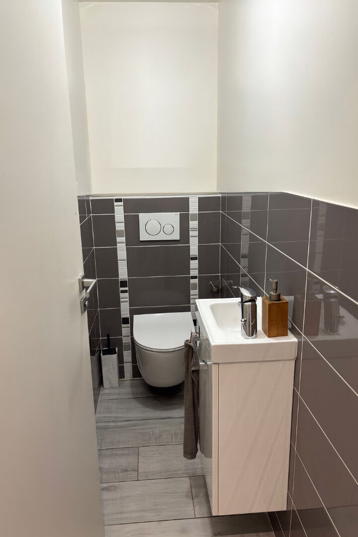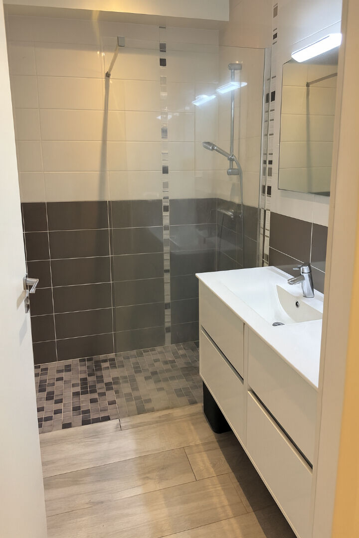 ORSAY. A 10 minutes à pied du RER B Orsay ville', cet appartement de type F3 non meublé - d'une superficie de 63,21² Loi Boutin, situé au rez-de-chaussée, comprend : Une entrée avec placard, un séjour avec cuisine équipée ouverte aménagée avec une porte-fenêtre donnant sur un jardin privatif, deux chambres avec placards portes coulissantes, une salle d'eau, un water-closet suspendu et indépendant avec lave-mains.
