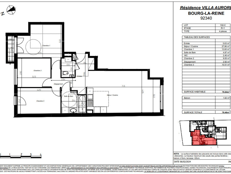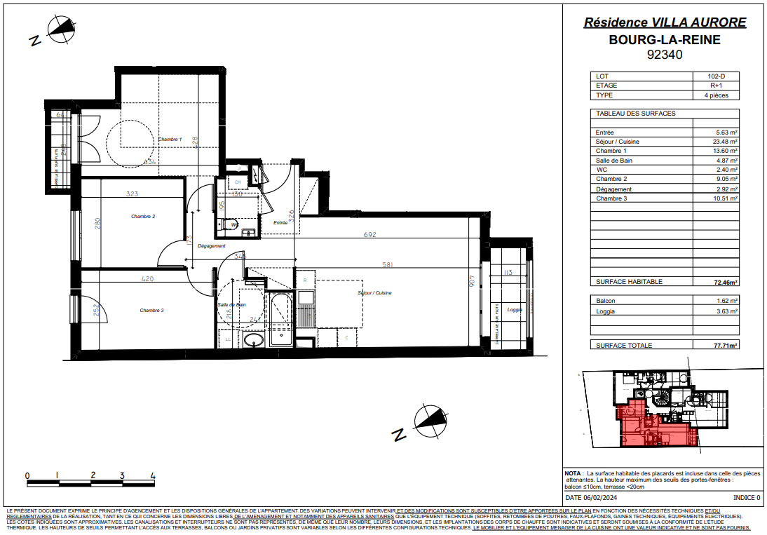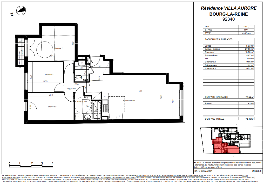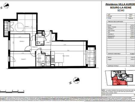 Appartement Bourg La Reine 4 pièce(s) 76.84 m2