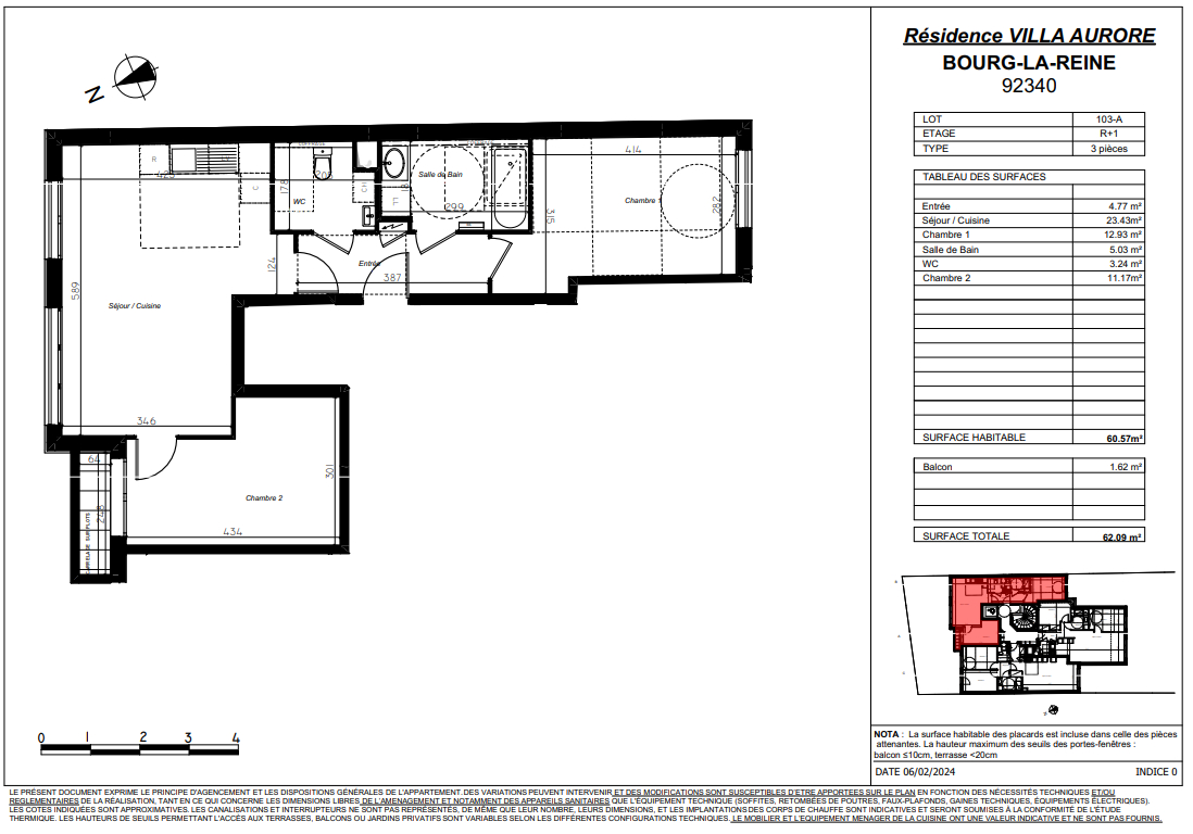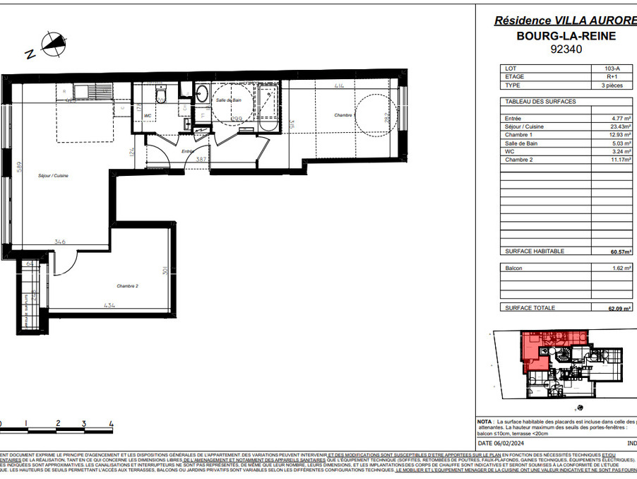 Appartement Bourg La Reine 3 pièce(s) 60.57 m2