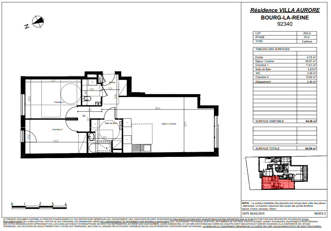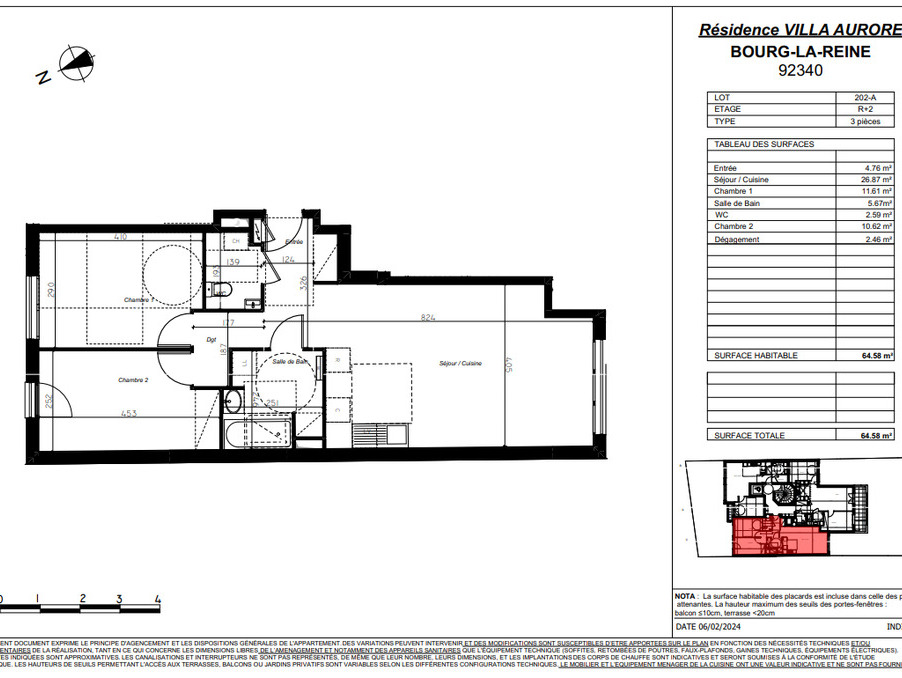 Appartement Bourg La Reine 3 pièce(s) 64.58 m2