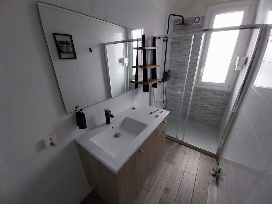 Au rez-de-chaussée : un palier, un séjour double avec un accès sur le balcon, une cuisine équipée, une chambre , une salle de bain et un water-closet séparé.