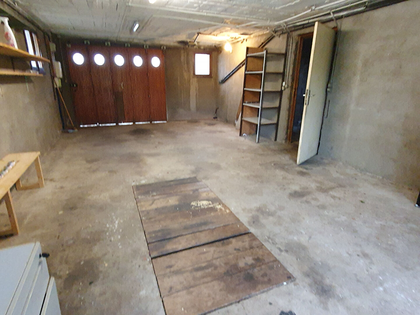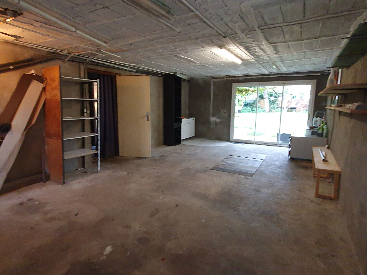 Sous-sol total : un hall d'entrée, buanderie, chaufferie et garage donnant accès au jardin.